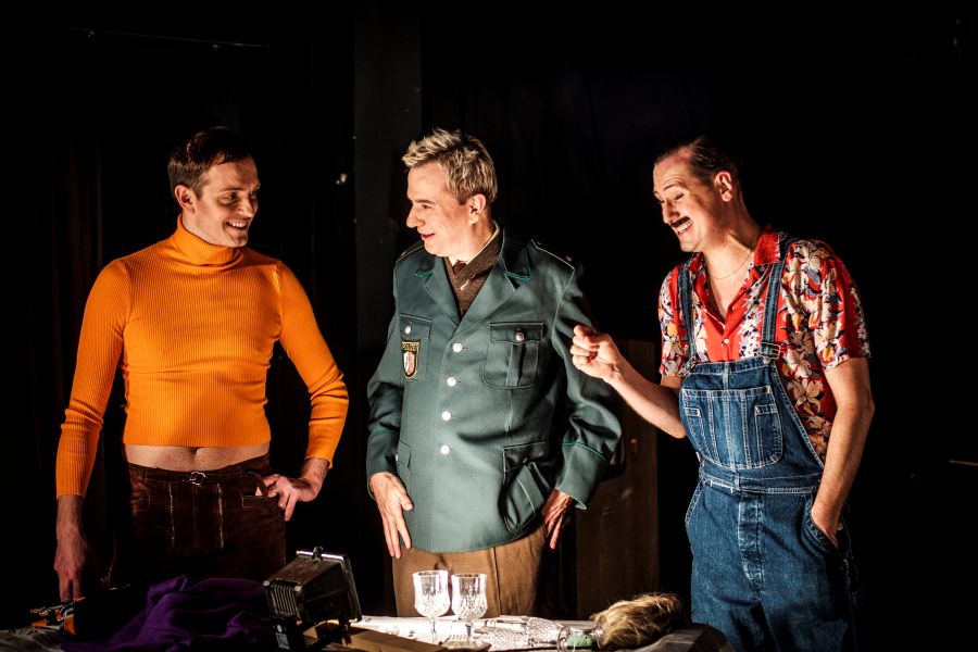 Walter Bockmayer, auch bekannt als Wally, ist in Köln eine Bekanntheit sondergleichen. Spätestens mit der Eröffnung der „Filmdose“ im Kwatier Latäng machte er sich einen Namen. Das Produktionsbüro Petra P. hat diesem Urgestein mit ihrer Inszenierung eine Hommage gewidmet, die passender nicht sein könnte. Mit einer Mischung aus erdachtem Theaterstück, Ausschnitten aus diversen Filmen und gezeigten Interviews, privat und aus Talk-Shows, ist das Stück so vielseitig, wie die Person, die es würdigt. Dabei kommen die kontroversen Aussagen genauso zur Sprache wie die liebenswert schrulligen. Wally wird nicht glorifiziert, sondern gezeigt, wie er war. Genau darin liegt der Charme der Darstellung und der Person, die porträtiert wird. Die Performance strahlt durch ihre Authentizität. Alte Weggefährten, wie Hella von Sinnen und Alfred Biolek kommen auch zu Wort. Daniel Breitfelder parodiert Wally in all seinen Facetten, von der Gestik bis hin zur ikonischen Stimme (inklusive der richtigen Tonlage). Sebastian Kreyer spielt Wallys Lebensgefährten Rolf Bührmann, oft in Polizeiuniform. Johannes Brüssau ist der Engel für alles, meist leichtbekleidet. Das Stück ist informativ, clever gemacht und witzig. Und immer ein wenig „schwuchtelig“.